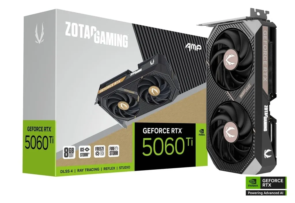 Komputery i podzespołyPodzespołyKarty graficzneZOTAC Karta graficzna GeForce RTX 5060 Ti 8GB AMP GDDR7 128bit 3DP/HDMI