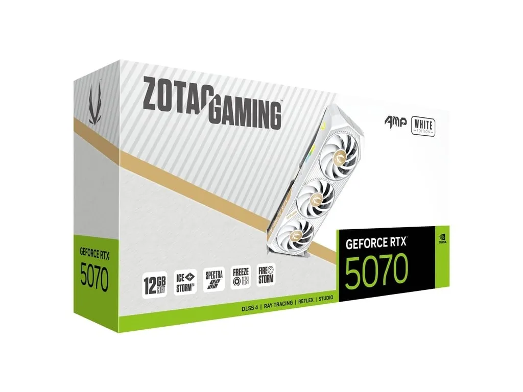Komputery i podzespołyPodzespołyKarty graficzneZOTAC Karta graficzna GeForce RTX 5070 AMP 12GB GDDR7 192bit 3DP/HDMI biała