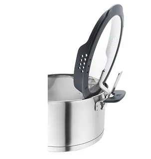 Witaj na wyższym poziomie gotowania: seria Simplify firmy ZWILLING to design i funkcjonalność. 5-częściowy zestaw garnków zachwyca nie tylko niezwykłym wyglądem - każdy rondel w zestawie zachwyca również innowacyjnymi właściwościami. Na 5-częściowy zestaw naczyń składają się 3 garnki wysokie (o średnicy 16, 20 i 24 cm), garnek niski o średnicy 20 cm oraz rondel o średnicy 16 cm. Ponadto wszystkie garnki, z wyjątkiem rondelka, są wyposażone w dopasowaną pokrywkę. Sito z dwoma otworami różnej wielkości jest zintegrowane z szarym silikonowym brzegiem, dzięki czemu płyn można wylewać bez dodatkowych akcesoriów. Oznaczenie X na wieczku wskazuje optymalne jego położenie, aby ograniczyć ulatnianie się pary. Dzięki zintegrowanemu uchwytowi szklaną pokrywkę z funkcją nalewania można przymocować do garnka podczas gotowania i nie trzeba już jej odkładać na bok. Dzięki zestawowi garnków Simplify nie musisz martwić się gorącymi uchwytami podczas gotowania: uchwyty są pokryte miękkim w dotyku silikonem - dla łatwej obsługi podczas gotowania. Naczynie wykonane ze stali nierdzewnej 18/10 jest wysokiej jakości, a wielowarstwowe dno SIGMA Classic+ zapewnia idealne rozprowadzanie ciepła. Wszystkie pięć garnków można myć w zmywarce i nadają się do indukcji.