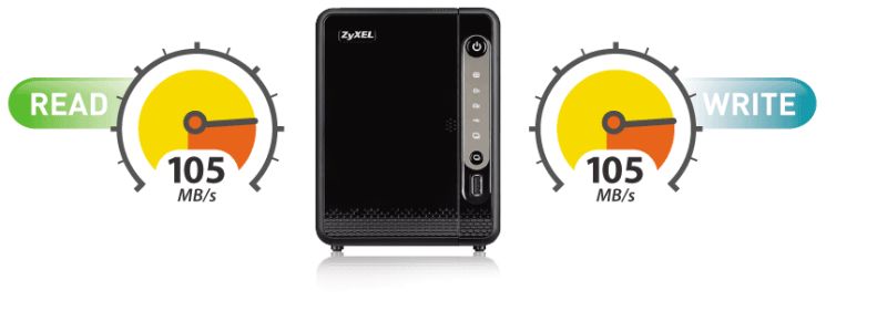 ZyXEL NAS326 został wyposażony w procesor o wysokiej wydajności, który umożliwia odczyt i zapis danych z prędkością do 105 MB na sekundę. Dzięki temu zapewnia błyskawiczne pobieranie danych z urządzeń mobilnych, zapisywanie plików i przesyłanie strumieni wideo UHD 4K bez jakichkolwiek problemów z wydajnością.