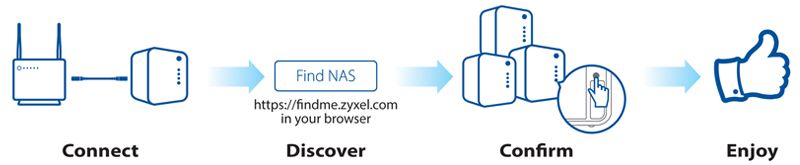 Wraz z ZyXEL FindMe, wystarczy wykonać kilka łatwych kroków, aby połączyć się z serwerem NAS w sieci domowej i w 15 sekund przejąć nad nim kontrolę! Nie ma potrzeby użycia oprogramowania NAS, co maksymalnie upraszcza i skraca instalację o 10 minut!