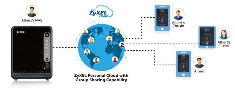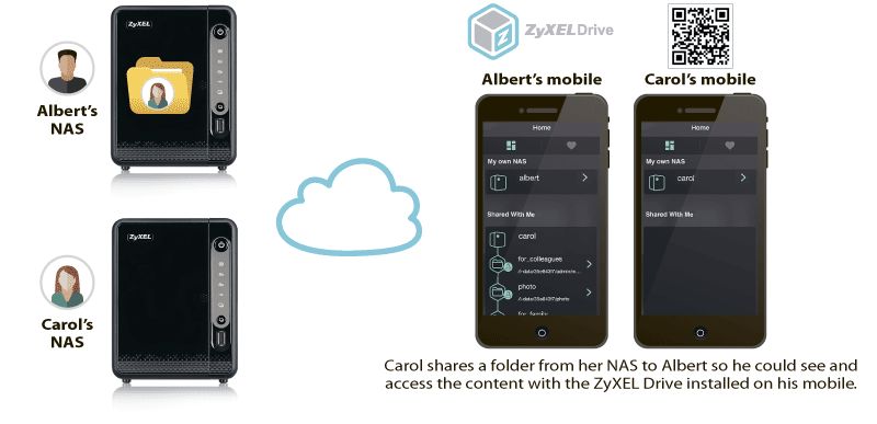 Oferuj swoją przestrzeń w chmurze swoim znajomym lub rodzinie poprzez współdzielony folder na ZyXEL NAS326 za pomocą aplikacji mobilnej ZyXEL Drive. Twoi znajomi i rodzina nie muszą kupować własnych serwerów NAS – wystarczy zainstalować mobilną aplikację ZyXEL Drive na ich ulubionych urządzeniach mobilnych.