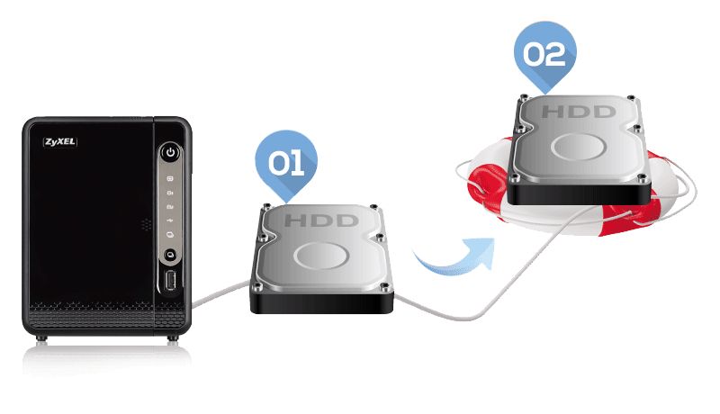 ZyXEL NAS326 obsługuje RAID 1 i umożliwia sklonowanie zawartości jednego dysku na inny. W przypadku awarii jednego z dysków użytkownik będzie mógł nadal przywrócić pliki lub korzystać ze swoich danych.